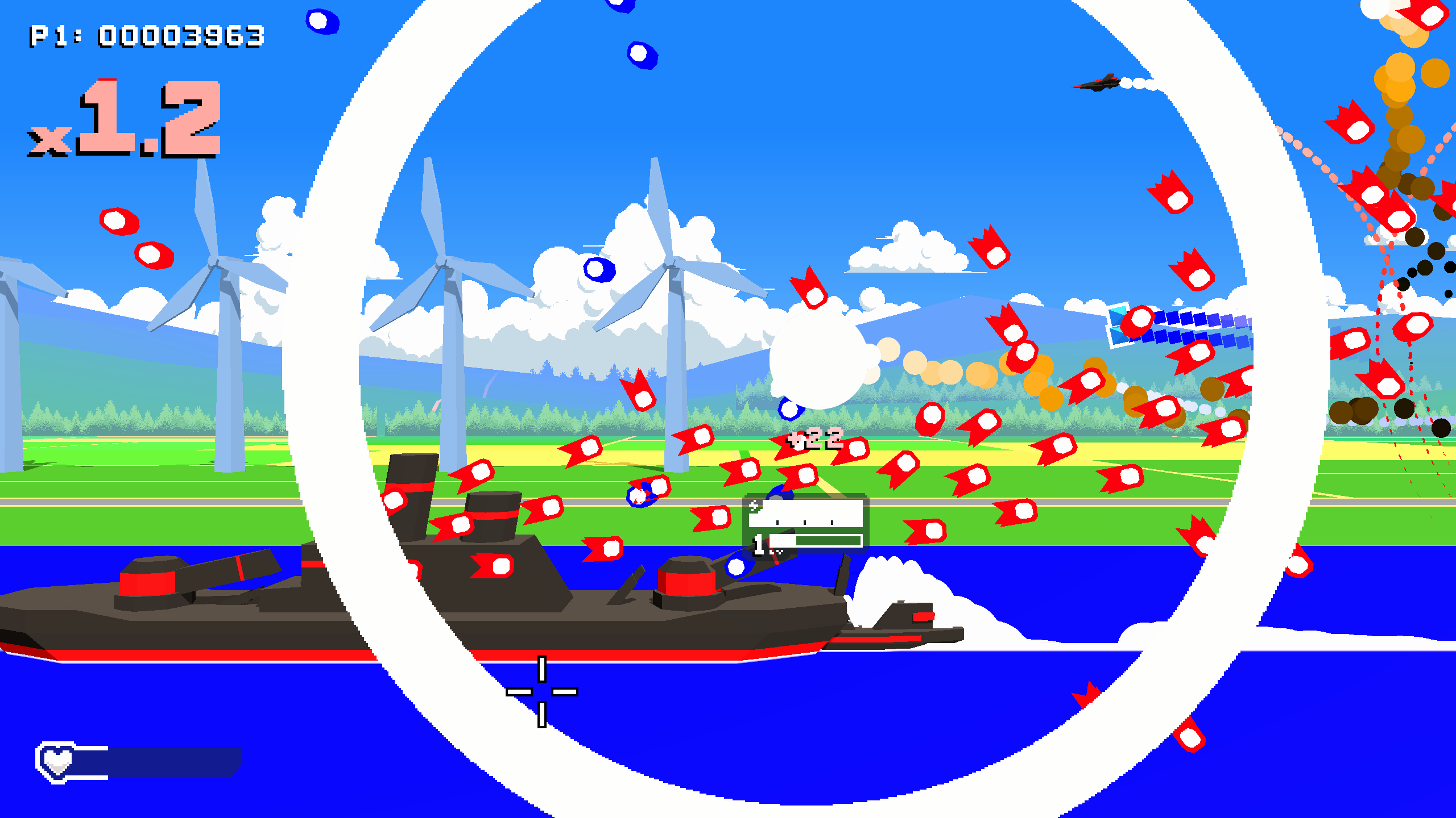 Fly an experimental jet and test your dogfighting skills against overwhelming odds. Use your simple, but tight controls to shoot down enemy units both air and sea in ever-increasing numbers, and your movement abilities to boost, turn, and stall past a sea of bullets, and outmaneuver everything else your foes throw at you.